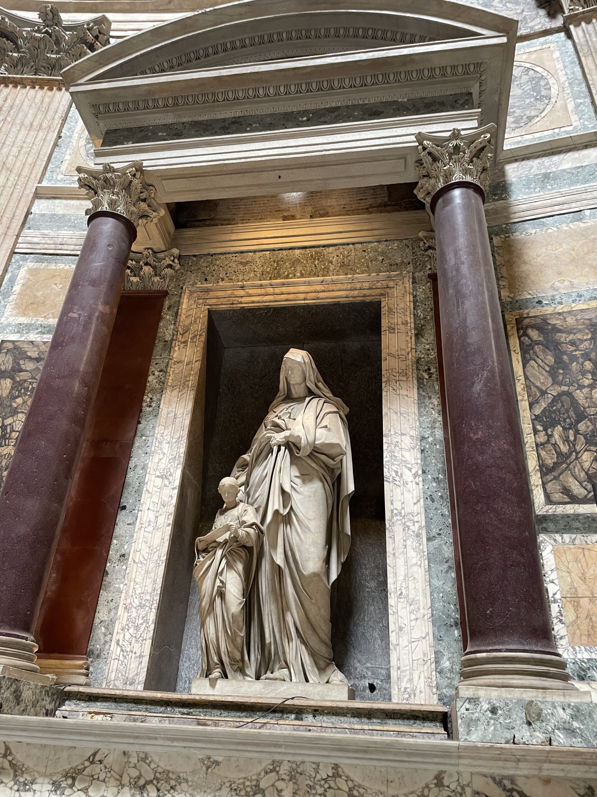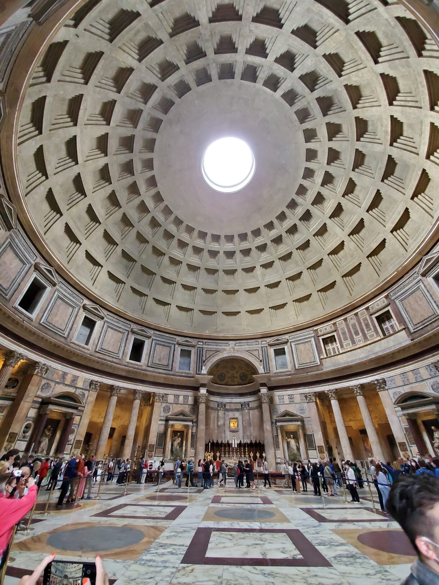 The Pantheon is composed of a pronaos and a domed rotunda, making it a unique architecture. During ancient time, the steps leading up to the Pantheon was above the Piazza Della Rotonda. Since then, many restorations are done to maintain the structure. In my opinion, the interior is even more impressive than the exterior. The rotunda showcases an open oculus and high ceilings. The Pantheon is also an important burial site.